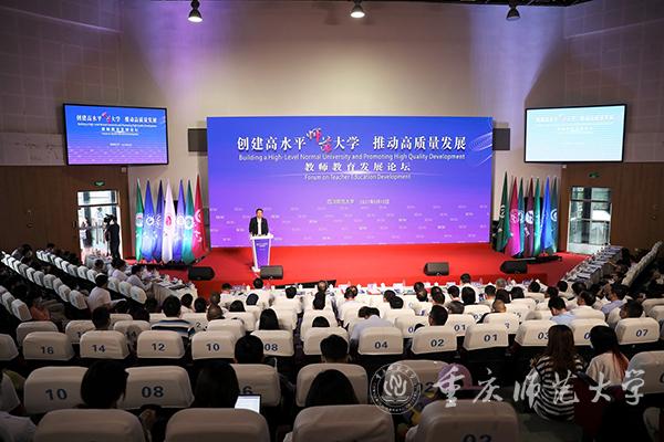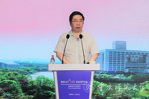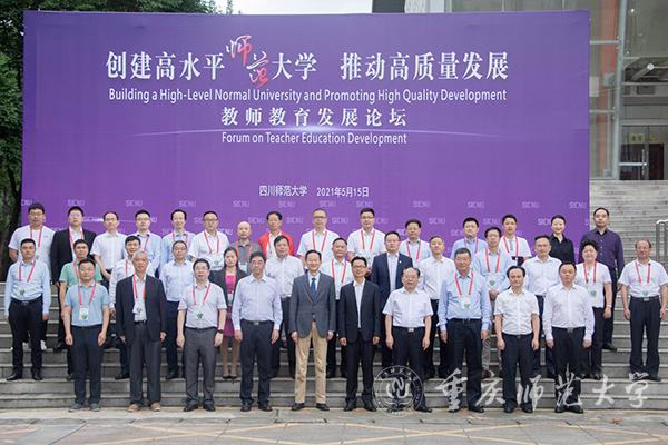为深入探讨在新发展阶段下如何进一步凸显师范大学各自的特色优势,实现内涵发展、高质量发展,建设高水平师范大学,5月15日上午,“创建高水平师范大学,推动高质量发展”教师教育发展论坛在四川师范大学举行。这是四川师范大学在建校75周年之际,为推动新时代教师教育高质量发展举办的一次学术盛宴。四川省教育厅二级巡视员王羽,华东师范大学、bat365官方官网、海南师范大学、浙江师范大学、广西师范大学等省内外13所兄弟院校的领导和嘉宾与会。论坛由四川师范大学副校长张海东主持。四川师范大学党委书记李向成致辞,代表学校对到会领导嘉宾表示热烈欢迎。四川省教育厅二级巡视员王羽讲话,对四川师范大学深化教师教育改革、办人民满意教育提出要求。bat365发展规划处、党政办负责人参加此次论坛。