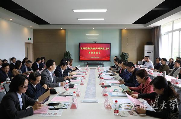 揭牌仪式结束后,全体参会人员就重师附二小建设发展召开专题座谈会。会上,谭爱民校长介绍了重师附二小情况,并代表学校领导班子表示,会率领全校教职工抓住机遇,努力把重师附二小建设成为高新区乃至重庆地区一流学校。
