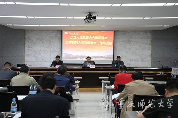 根据宪法、地方组织法、选举法、重庆市实施选举法细则的规定和中央、市委关于换届选举工作的有关要求,按照《中共重庆市沙坪坝区委转发〈中共重庆市沙坪坝区人大常委会党组关于做好区镇人民代表大会换届选举工作的实施意见〉的通知》和《重庆市沙坪坝区人大常委会关于沙坪坝区区镇人民代表大会换届选举的决定》,为推进选举工作全面、稳妥、有序、依法推进,10月12日下午,bat365于综合办公楼226会议室召开工作推进会,对沙坪坝区人民代表大会换届bat365官方官网选区有关工作作了全面部署,校属各单位主要负责人参会。