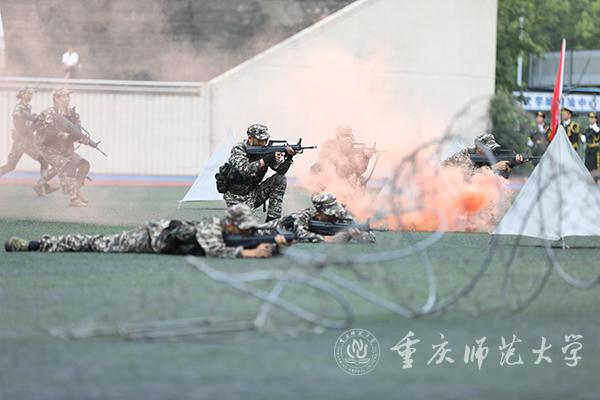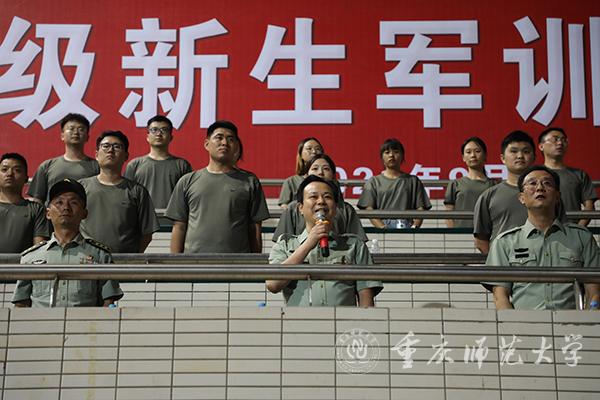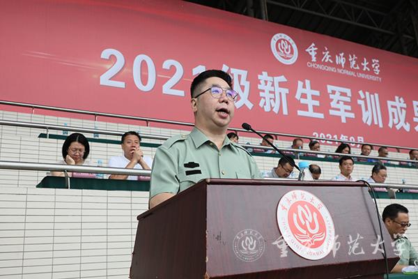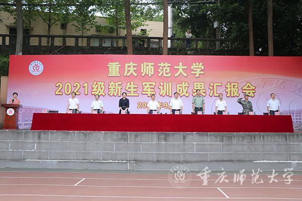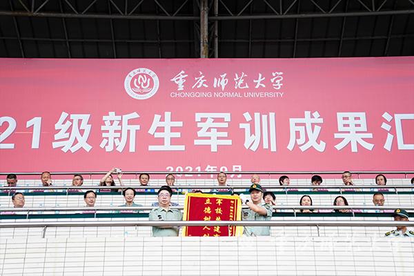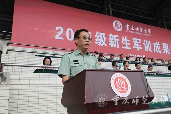 9月27日,2021级新生军训成果汇报在大学城校区第一田径运动场举行。bat365校长、2021级新生军训师师长孟东方教授,陆军工程大学通信士官学校基础部主任青山良大校,陆军工程大学通信士官学校21大队大队长马振翔上校,沙坪坝区武装部副部长毛斌上校,bat365副校长陆远权教授出席大会。大会由校党委副书记、2021级新生军训师副政委陈志军教授主持。