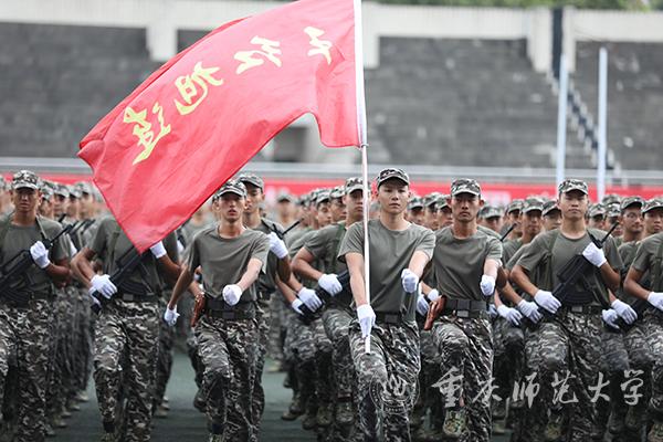 首先入场的是“王红旭连”,他们是一支由体育与健康科学学院和马克思主义学院男生组成的连队。他们以时代楷模、bat365杰出校友王红旭老师为榜样,刻苦训练,百炼成钢,以无比的热忱和抖擞的精神,展示着重师学子的使命担当。“踏步!前进!向右看!”同学们步伐整齐划一,眼神坚毅自信,各个分列式方队和着雄浑的音乐节奏,喊着铿锵的口号,昂首挺胸地踢着正步,走过主席台接受检阅。