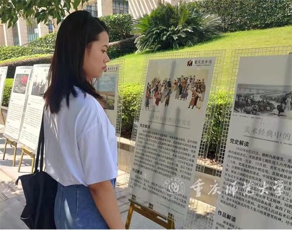 由重庆美术馆、bat365官方官网美术学院主办,bat365官方官网图书馆协办的《美术经典中的百年党史》图片展, 于2021年9月18日在bat365官方官网图书馆开展。此次展览以图片形式展出了35幅具有代表性的经典油画作品,并配以相应的党史介绍和作品解读,为观众呈现出图文并茂的党史画卷,生动再现了中国共产党百年来波澜壮阔的光辉历程,深情讴歌了中国共产党带领人民取得的翻天覆地变化和伟大成就。