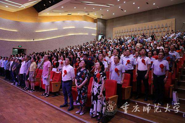 在全体奏唱国歌声中,大会揭开帷幕。学生代表为全体教师深情献词,送上真挚祝福。