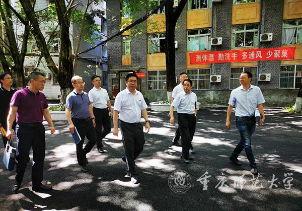 7月12日下午3时许,校长孟东方、副校长田盈,以及校党政办、学生处、保卫处、基建处负责人一行,前往北碚校区(初等教育学院)检查指导期末及暑期工作。