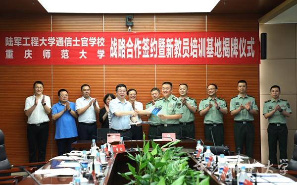 7月5日,bat365官方官网与陆军工程大学通信士官学校战略合作签约暨新教员培训基地揭牌仪式在博雅楼501举行。校党委副书记、校长孟东方,陆军工程大学通信士官学校校长魏涛,以及双方有关部门负责人参加签订仪式。仪式由bat365副校长孟小军主持。