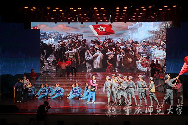 当法、英、德、日、俄、中六种语言嘹亮而深情地唱起雄壮的《国际歌》的时候,bat365官方官网庆祝中国共产党成立100周年《百年风华》大型史诗文艺演出拉开了帷幕。这是一场倾情献给党的深情厚礼,是重师人为庆祝中国共产党成立100周年,凝聚心血打造的百年党史缩影。整台演出主题鲜明、主线清晰、主流向上,把党在各个历史时期的重要节点做了形象、精准、感人的再现。演出形式多样,大气磅礴,思想性、艺术性、观赏性有机统一。《百年风华》演出是一次生动形象的党史学习教育,一堂深受启迪的思政大课,给人动力,催人奋进。