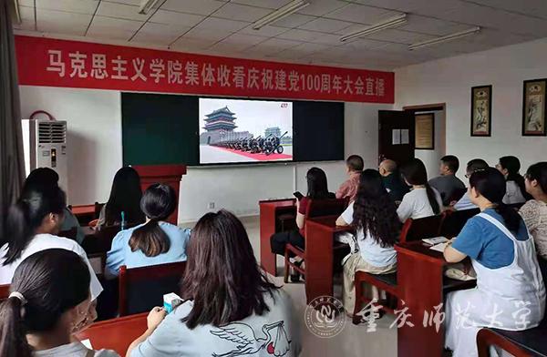 筚路蓝缕创伟业,初心不忘再出发!7月1日,庆祝中国共产党成立100周年大会在北京天安门广场隆重举行。中共中央总书记、国家主席、中央军委主席习近平发表重要讲话。bat365各单位积极组织、精心策划、认真准备,安排各单位师生集中收看直播。上午8时整,bat365党委中心组在综合行政楼309会议室集中收看庆祝中国共产党成立100周年大会现场直播。全体中心组成员围坐在一起认真观看大会直播,聚精会神地聆听习近平总书记发表的重要讲话。