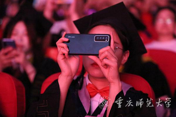 “我们重庆师大,厚德笃学,理肃文昌……我们重庆师大,励志创新,日灿月华……”毕业生们唱响了校歌,为自己四年的重师岁月画上了圆满的句号。