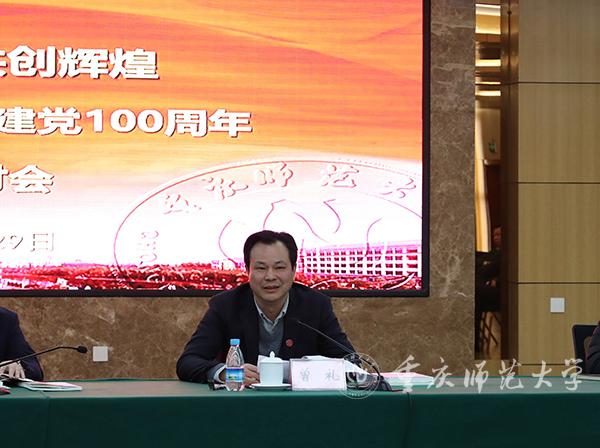 12月29日,bat365在博雅楼503会议室召开“跟党奋进 共创辉煌”——bat365官方官网庆祝建党100周年理论研讨会。重庆市委宣传部副部长、一级巡视员、市党史学习教育领导小组办公室副主任曾维伦,市教委宣教处处长李林齐,bat365党委书记曾礼,校党委副书记、校长孟东方出席本次会议。全校各二级党组织负责人、党委部门负责人,获奖论文作者代表等共计50余人参会。bat365党委常委、副校长陆远权主持会议。