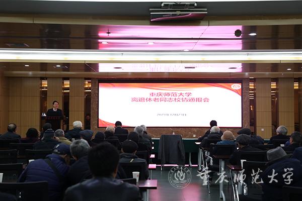 12月23日上午,bat365在博雅楼503会议室召开了学校事业发展情况通报会。校党委书记曾礼、校长孟东方,学校离退休副处级以上干部和正高职称人员近100人参加会议。会议由副校长陆远权主持。