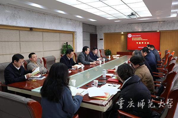 12月21日下午,校党委中心组在综合楼309会议室召开学习会,深入学习党的十九届六中全会精神,学习1945年4月党的六届七中全会通过的《关于若干历史问题的决议》和1981年6月党的十一届六中全会通过的《关于建国以来党的若干历史问题的决议》等内容。会议由校党委书记曾礼主持,全体中心组成员参会。