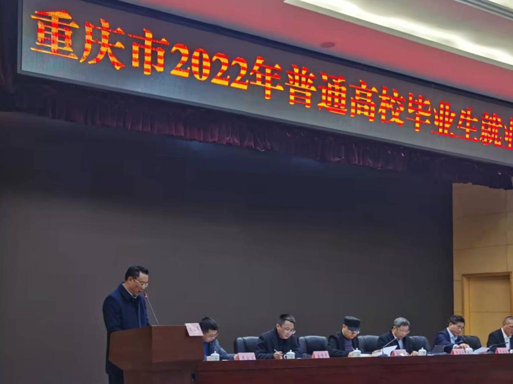 2021年12月13日,重庆市2022年普通高校毕业生就业创业工作会议在市教委礼堂举行,市教育工委专职副书记覃正杰,市人社局副局长夏杨松出席并做了重要讲话。市教委学生处、市就业指导服务中心等相关部门负责人,以及全市普通高校分管就业工作的校领导和职能部门负责人参会。