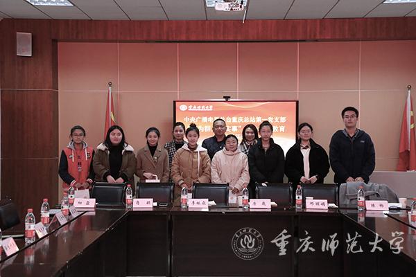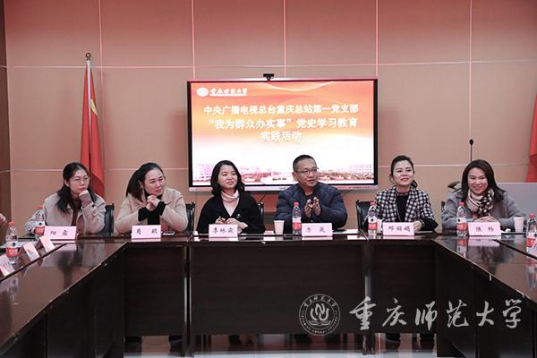 在12月3日“国际残疾人日”来临之际,为了解特殊人群的需求,帮助残障学生解决困难,发挥媒体作用,深化党史学习教育,12月2日,中央广播电视总台重庆总站第一党支部支部书记唐巍、组织委员邓丽娟、宣传委员陈杨等一行与bat365教育科学学院学生党支部在砺志楼2421,联合开展了党史学习教育“我为群众办实事”实践活动。bat365教科院党委副书记李林霖、党政办公室主任肖颖、组织员阳露、党员教师代表曾乐平、梁玉音以及bat365教科院学生代表和学生党员代表参加此次活动。