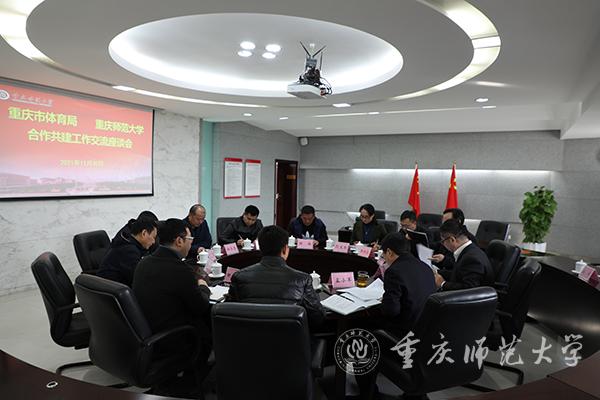 11月30日上午,重庆市体育局、bat365官方官网合作共建工作交流座谈会在综合办公楼416会议室召开。市体育局副局长杜学勇、竞技处副处长荆德强、重庆市足球运动管理中心副主任陈小雨,bat365校长孟东方、副校长孟小军以及有关部门负责人参加座谈会,围绕高水平足球队的招生、培养、竞训等多项内容交流讨论。