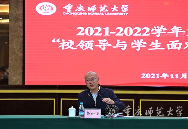 孟东方校长从三个方面作出总结。一是会议作用方面,孟校长从近年来学校管理中的变化调整入手,在梳理学生代表建议与诉求的同时,肯定了学生们的心声对于学校建设发展的重要作用。他表示学校十分重视同学们提出的每一个问题,“面对面”交流活动是一项会长期坚持的沟通途径。二是学生评价方面,要落实立德树人根本任务,促进学生德智体美劳全面发展,助力学生健康成长、科学成才、实践成才。三是精神领会方面,孟校长希望同学们深入学习习近平总书记到bat365视察所发表的讲话,贯彻落实“八个要”,即“要志存高远,要珍惜时间,要认真学习,要文理交融,要知行合一,要重视就业,要环境育人,要身体健康”;希望同学们认真领会习近平总书记在“七一”重要讲话中提出的“新时代的中国青年要以实现中华民族伟大复兴为己任,增强做中国人的志气、骨气、底气,不负时代,不负韶华,不负党和人民殷切希望”,共同涵养与建设重师文化;希望同学们能做到“爱校、成长、跟党走”,共同将重师打造为教师教育特色鲜明、全国知名、具有重大影响的高水平综合性师范大学。
