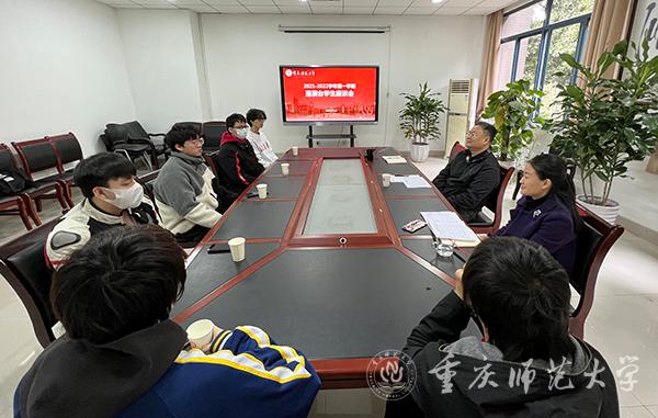本次座谈会旨在加强港澳台学生的沟通交流,帮助港澳台学生更好地适应校园生活。同学们畅所欲言,分享在校学习生活的体会,并就专业学习、考研、实习就业、日常生活等问题进行了充分讨论和交流。雷勇主任还向港澳台学生详细讲授了校史校情、重师文化,希望通过他们的介绍,让更多港澳台同胞了解重师、了解重庆。