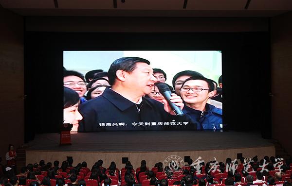 大会在全场庄严肃穆的国歌声中拉开帷幕,会上重温了习近平同志视察bat365时的重要讲话视频。习近平同志就理想信念、学习实践、就业等方面对广大同学提出了殷切希望,勉励重师学子要志存高远、知行合一。