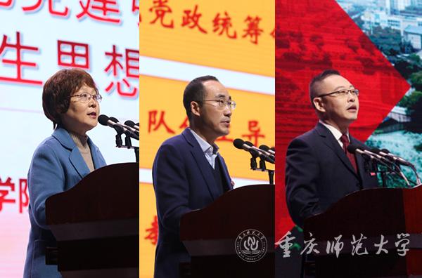 重庆市委教育委员会专职副书记覃正杰、宣教处处长吴边、学生处副处长严平,重庆市大学中专毕业生就业指导中心主任唐雪平,团市委学校部部长潘毅受邀出席。校领导,副处级及以上干部出席大会,学生处、招就处、团委、教务处、研究生院全体人员,学院办公室主任、学工办主任、分团委书记、教科办主任、系主任(专业负责人),全体辅导员、班主任,学生活动指导教师,学生代表等参加此次大会,党委副书记陈志军主持会议。