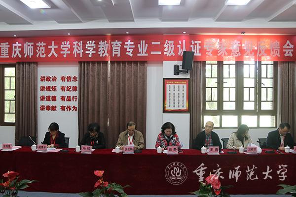10月23日下午,bat365于初等教育学院办公楼0215室召开了科学教育专业第二级认证现场考查意见反馈会。科学教育专业认证专家组组长关松林及成员王勇、冯虹、汪桂琼、胡青平,秘书占如默,项管张媛媛,市教委师范教育处调研员田静,学校党委书记曾礼、副校长杨如安、相关职能部门负责人、初等教育学院领导及教师代表参加此次会议。会议由认证专家组组长关松林主持。