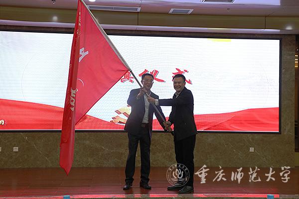 陈志军副书记代表学校向王红旭班、王红旭团支部授旗,这标志bat365王红旭班、王红旭团支部正式成立。值得一提的是,这是bat365首次以校友名字命名班团支部。