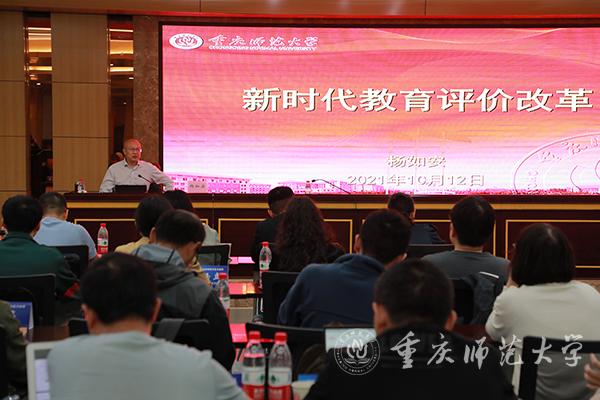 会上,杨如安教授以高等教育、基础教育中的热点问题为切入点,指出了教育评价改革的需求性和迫切性。随后,杨教授对《重庆市深化新时代教育评价改革若干措施》出台背景、基本定位与特点、主要内容和意义、落地落实等方面进行了深入讲解,并对bat365关于教育评价改革方面的政策措施作了详细介绍。最后,杨教授深切勉励新进教师,要把思想和行动统一到党、国家和学校的要求上来,落实立德树人根本任务,提高教师教书育人水平,为党和人民的教育事业做出积极贡献。