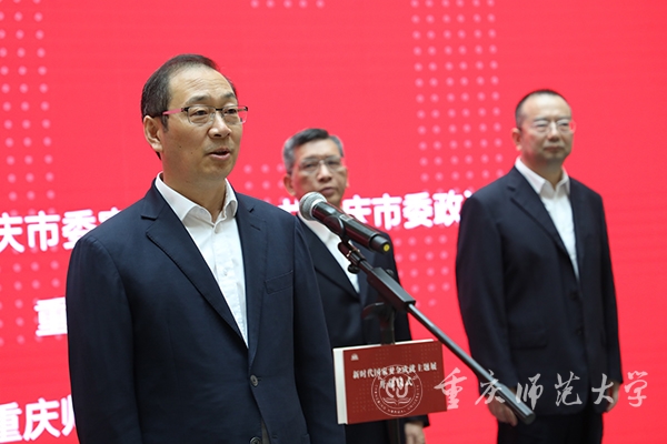 “今年的4月15日是第七个全民国家安全教育日,2022年是中国共产党第二十次全国代表大会召开之年。”校党委书记曾礼在开幕式上简要介绍了学校近年来开展的国家安全日教育活动以及此次主题展的背景与布展情况。他谈到,学校历来高度重视“总体国家安全观”教育,依托教育部高校思想政治工作创新发展中心扎实开展大学生国家安全教育。一是在市委国安办、市委宣传部、市教委等部门的支持指导下,树立大思政观念,把国家安全教育、思想政治教育、专业科学教育三者有机融和,把显性教育和隐性教育统一起来,内化思想引领,强化国家安全意识。二是通过举办国家安全教育教学风采展示大赛、国家安全教育思政公开课等活动,采用情景对话、讲述诵读、青春歌舞、情景演绎、多媒体技术等新颖形式,每年坚持开展国家安全主题宣传教育。三是深化教育培训,以庆祝中国共产党成立100周年活动、“党史资源+沉浸式教学”“国培计划”等形式,聚焦载体融入、聚力路径创新、聚效质量增强,引导广大师生增强“四个意识”、坚定“四个自信”,提升维护国家安全能力。四是开展专题研究,就重庆市国家安全教育基地建设情况开展了课题研究,形成了调研报告,并提出了重庆市国家安全教育基地建设的思路及建议。