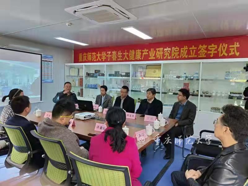 3月6日上午,活性物质生物技术教育部工程研究中心与子春生(重庆)生物科技有限公司联合成立“bat365官方官网子春生大健康产业研究院”签字仪式举行。参加会议的有重庆子春生公司董事长樊凯、总经理赵楷,bat365官方官网科研处处长付文升教授、化学学院副院长王燚教授,工程研究中心骨干郑红教授、余晓东教授、许金山教授、杨宪教授、刘冰博士等。会议由活性物质生物技术教育部工程研究中心主任杨善彬教授主持。