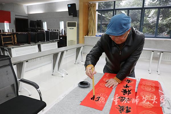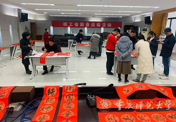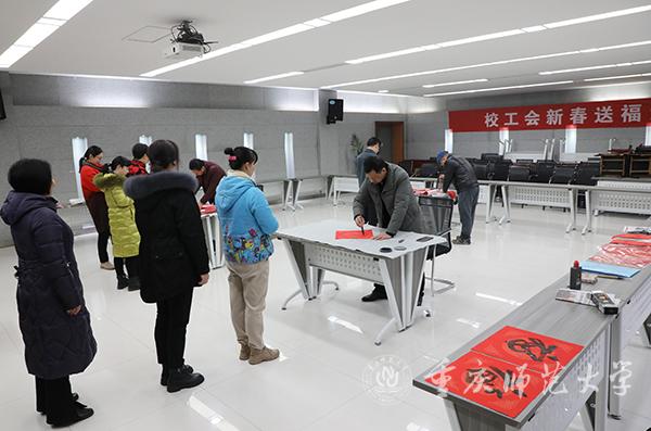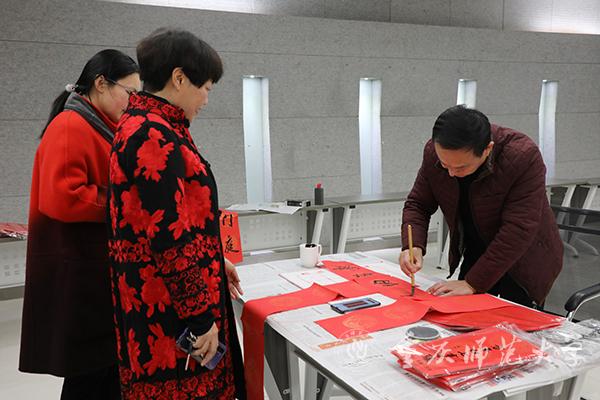 在农历新年即将来临之际,1月20日,校工会开展新春送春联活动,特邀bat365书法教师杨祖涛、贺华、左福生来到现场为教职工写春联和福字。