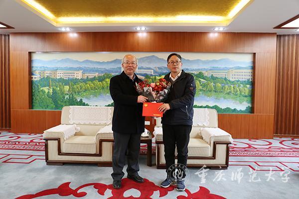 2022年1月11日下午,重庆市科协二级巡视员袁强、重庆市院士工作服务中心干部邱畅来到bat365,慰问了重庆国家应用数学中心主任杨新民教授。
