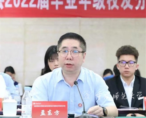 校长孟东方作总结讲话,他对2022届毕业年级校友分会成立表示祝贺,对理事成员们表达了美好祝愿。孟校长指出,校友是学校的宝贵资源和财富,在学校建设发展中具有重要的地位和作用,我们要做好校友联络工作,服务好校友。同时,孟校长对理事成员们提出三点希望:弘扬校友文化,厚植母校情怀;整合校友资源,赋能学校发展;赓续重师精神,建功新时代。
