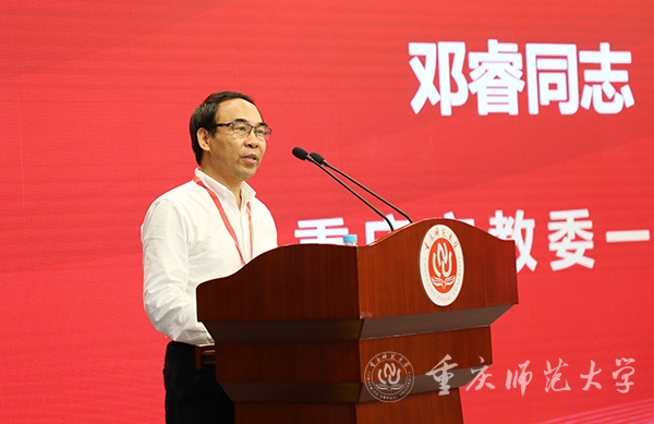 重庆市教委一级巡视员邓睿对学院的成立表示祝贺,他指出,重庆职业技术师范学院的成立是重庆职业教育领域的一件大事,是推进重庆职业教育高质量发展的一件实事,更是构建高质量现代职业教育体系的创新举措。在肯定bat365主动作为的同时,他希望学校强化使命担当,用好有利政策,挖掘资源,创造机遇,建好学院,并提出五点希望与要求:一是强化为党育人、为国育才的历史使命;二是加强职教师资培养培训的主责主业;三是深化职教师资队伍建设的学术研究;四是引领职业教育发展的社会服务;五是协作高校、行业、企业的合作共建。