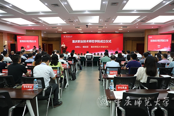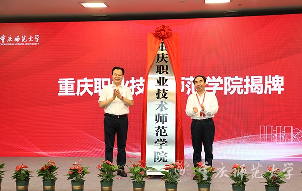 校党委书记曾礼宣读了学校关于重庆职业技术师范学院机构设立和人事任命文件,重庆市教委一级巡视员邓睿与曾礼书记一同为学院揭牌,重庆职业技术师范学院正式成立,这也是重庆设立的首个职业技术师范学院。