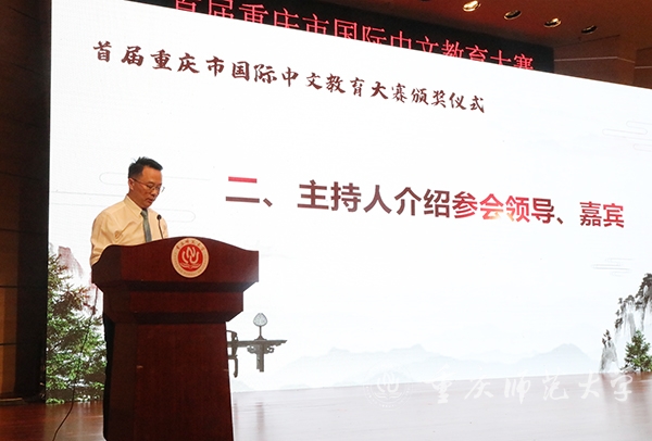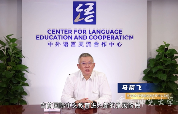 随后,教育部中外语言交流合作中心主任马箭飞以视频方式向大赛成功举办表示祝贺。马箭飞主任肯定了重庆市教育主管部门和有关院校在推动国际中文教育事业发展和深化中外语言文化交流合作上作出的重要贡献。同时,他也希望以本次比赛为契机,进一步汇聚资源、形成合力,继续支持并加强国际中文教育专业学位建设,持续提升国际中文教师培养质量和水平,努力适应新时代国际中文教育事业面临的新任务、新要求。