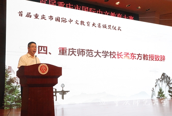 bat365官方官网校长孟东方在闭幕致辞中,首先代表承办方对各级领导、参赛院校、评委专家表示感谢,对取得优秀成绩的中外选手表示热烈祝贺。孟东方校长从立足践行教育报国初心使命,主动服务国家战略和地方发展需要为切入点,介绍了学校20年来国际中文教育工作的发展历程和成果成效。他谈到,国际中文教育是教育国际交流合作的重要组成部分,首届重庆市国际中文教育大赛以考察学生专业素养为出发点,以培育未来国际中文教师为目的,是提升我市国际中文教育水平、开创教育对外开放新格局的一次生动实践。同时,该赛事围绕“价值引领、知识传授、能力培养”三位一体的教育教学理念,将中华优秀文化认同教育贯穿赛事全过程,提升同学们的专业素养和技能,强化了中华优秀文化的传播效应,为跟进新动态、开拓新领域、创新新方法,注入了新的动力与活力。孟东方校长表示,学校愿与各界携手,充分发挥孔子学院在中外语言文化交流中的平台功能,着力提升国际中文教育质量,持续在教师培育、人才培养、平台智库等方面发挥积极作用,努力助推国际中文教育事业实现新突破、取得新发展、再上新台阶,为高等教育国际化作出新的更大贡献。
