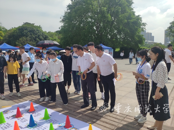 5月12日上午,bat365官方官网第四届“大学生生涯体验节”开幕式在大学城校区图书馆前广场拉开帷幕。校党委副书记陈志军,相关职能部门负责人,各学院学生工作分管副书记、辅导员、生涯二级站负责人以及各学院的学生代表参加了开幕式。重庆市教委大学中专毕业生就业指导服务中心培训与研究部吴静老师应邀参加了开幕式。