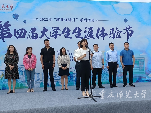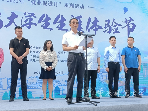 校党委副书记陈志军在讲话中指出,职业生涯教育工作是学校人才培养工作的重要一环,是bat365就业育人和实践育人的重要载体。从2019年开始,bat365已连续开展四届“生涯体验节”、三届“就业活动月”、一届“暑期职业体验”活动,这在重庆市、乃至整个西南地区都是不多见的。近年来,学校围绕分类、分级职业发展理念,构建了 “‘121N’全程化生涯服务体系”,并通过“生涯体验节”“就业活动月”等大型生涯教育活动,为同学们的职业发展提供知识、信息、方法、路径、情感等多种支持。他鼓励全体同学积极了解时代趋势和国家发展,主动了解行业状况和岗位要求,结合大学学习发展的不同阶段,主动构建自己的职业发展目标,积极参与多种职业体验,开展职业成长记录,探索多元职业发展路径,提升自己的生涯管理能力和幸福生活能力。