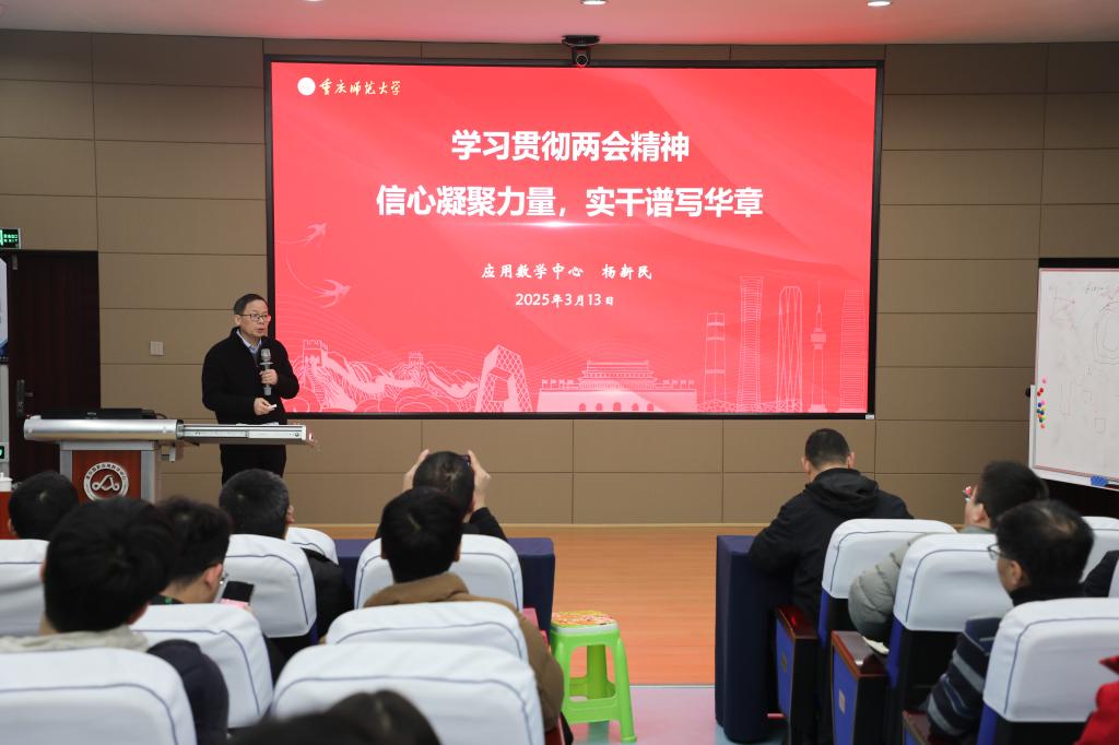 3月13日上午,重庆国家应用数学中心召开全体会议。全国政协委员、重庆国家应用数学中心主任杨新民教授应邀作《信心凝聚力量,实干谱写华章》专题报告,对两会精神和基本情况进行了传达。
