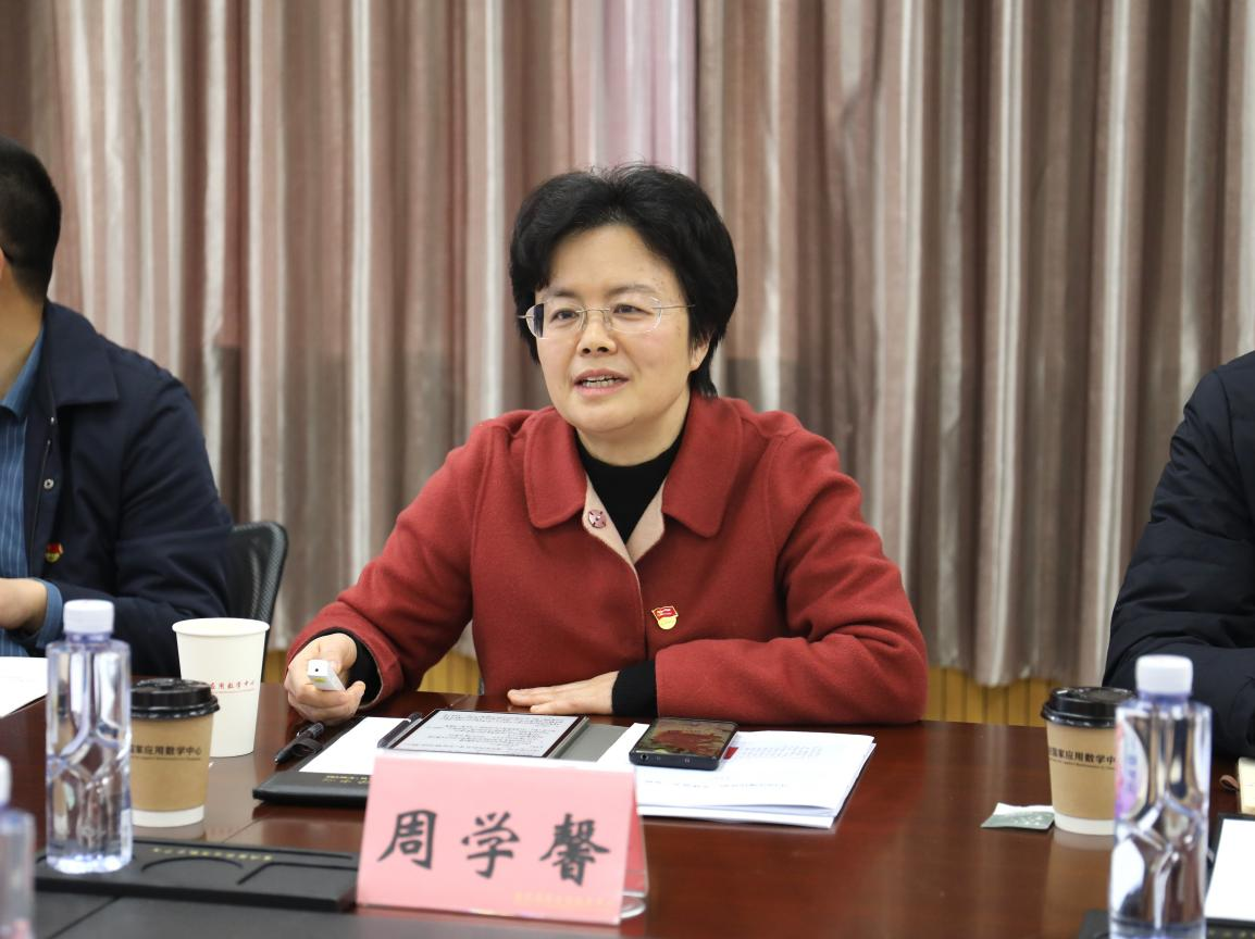 最后,周学馨进行点评讲话,她谈到本次联合主题党日活动有“三个好”:时机好、组织好、效果好,做到了学有所思、学有所悟、学有所得。她指出,学校要继续加大基层党组织建设力度,持续支持重庆应用数学中心支部建设,结合国家级科研平台的优势与特色,扎实开展有特色、有亮点、有影响的组织生活,不断探索党建与业务深度融合的新方法、新举措,深耕支部品牌建设,力争在“样板支部”上要有突破,为学校党建工作高质量发展增添新动能。