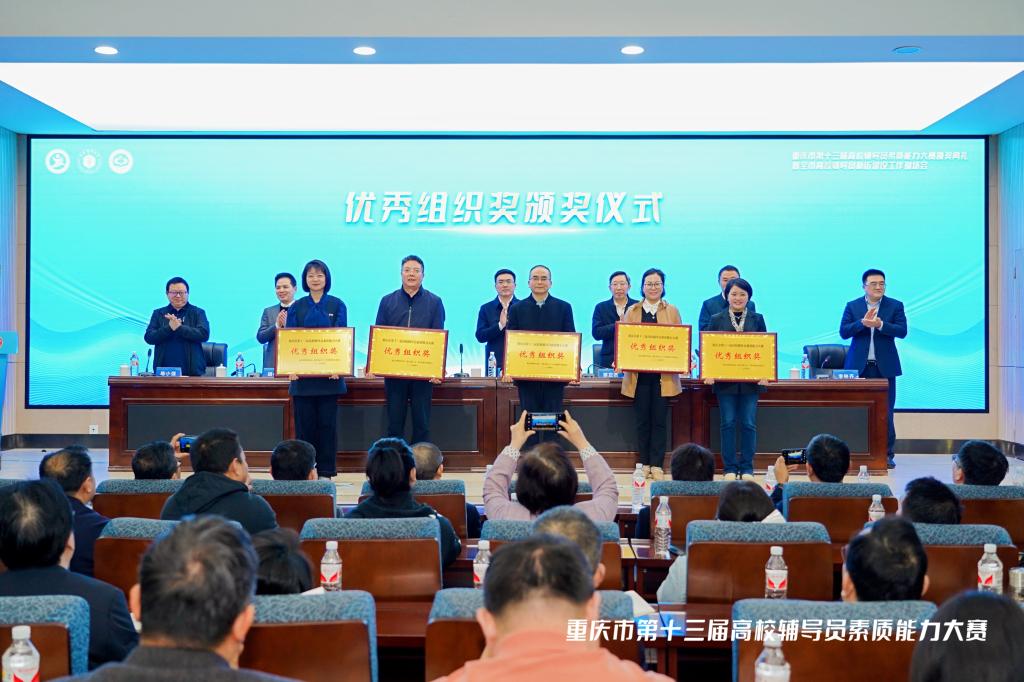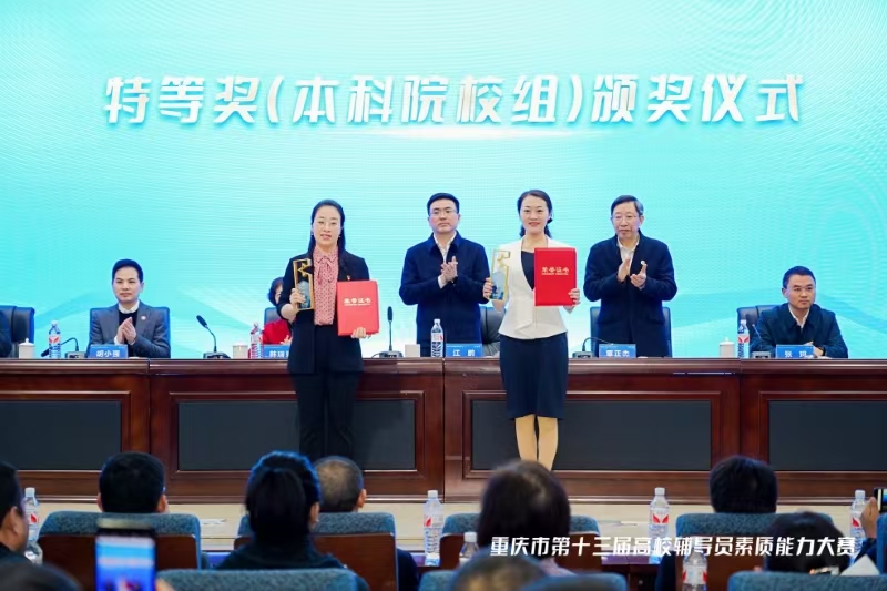 4月1日至3日,由重庆市教育委员会、重庆市总工会、共青团重庆市委员会联合主办的重庆市第十三届高校辅导员素质能力大赛在重庆医科大学缙云校区顺利举行。bat365美术学院党委副书记丁睿获特等奖,马克思主义学院辅导员谭景文获优秀奖,学校获优秀组织奖。