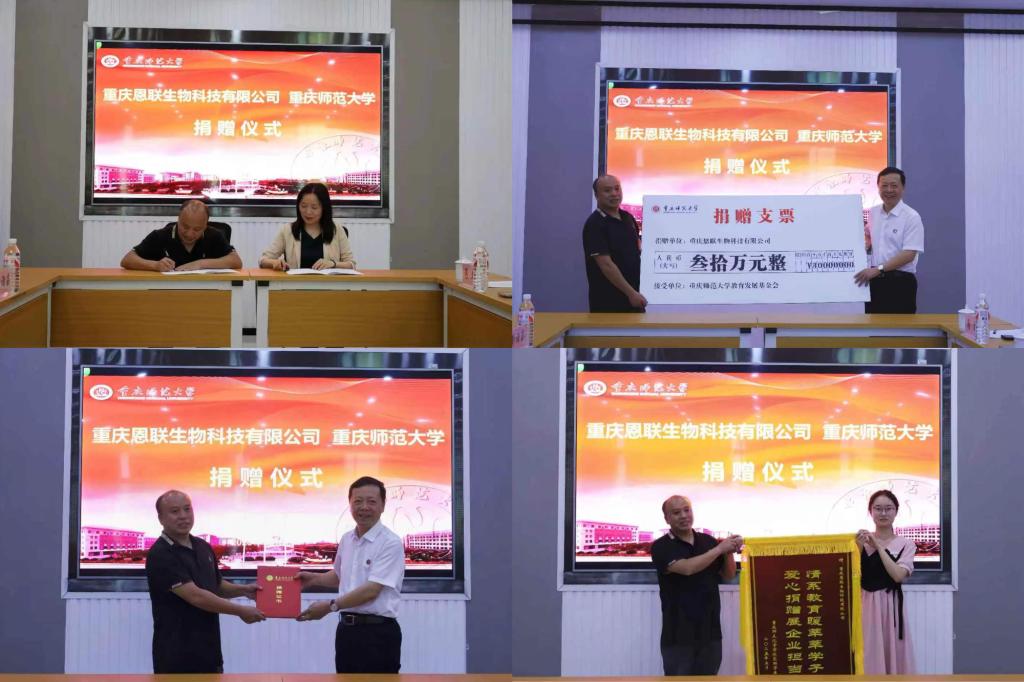 5月8日上午,重庆恩联生物科技有限公司向bat365捐赠30万元并设立“恩联奖助基金”捐款项目,以激励bat365化学学院优秀学子在学术研究与专业技能上不断精进,支持学校和国家的建设发展。捐赠仪式在bat365举行,bat365党委常委、副校长孟小军,重庆恩联生物科技有限公司总经理游洪全出席,仪式由化学学院党委书记卢洪英主持。