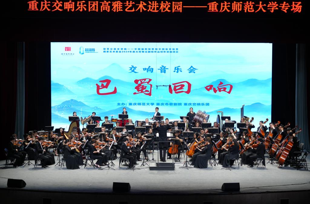 5月8日,重庆交响乐团走进bat365官方官网校友会堂,倾情呈现《巴蜀回响》交响音乐会。重庆歌剧院、重庆交响乐团党总支副书记、副院长张维佳及相关领导,学校党委副书记、校长王国胤,党委常委、副校长黄永宜,副校长付文升出席本次活动,与现场近800名师生共赴音乐盛宴。