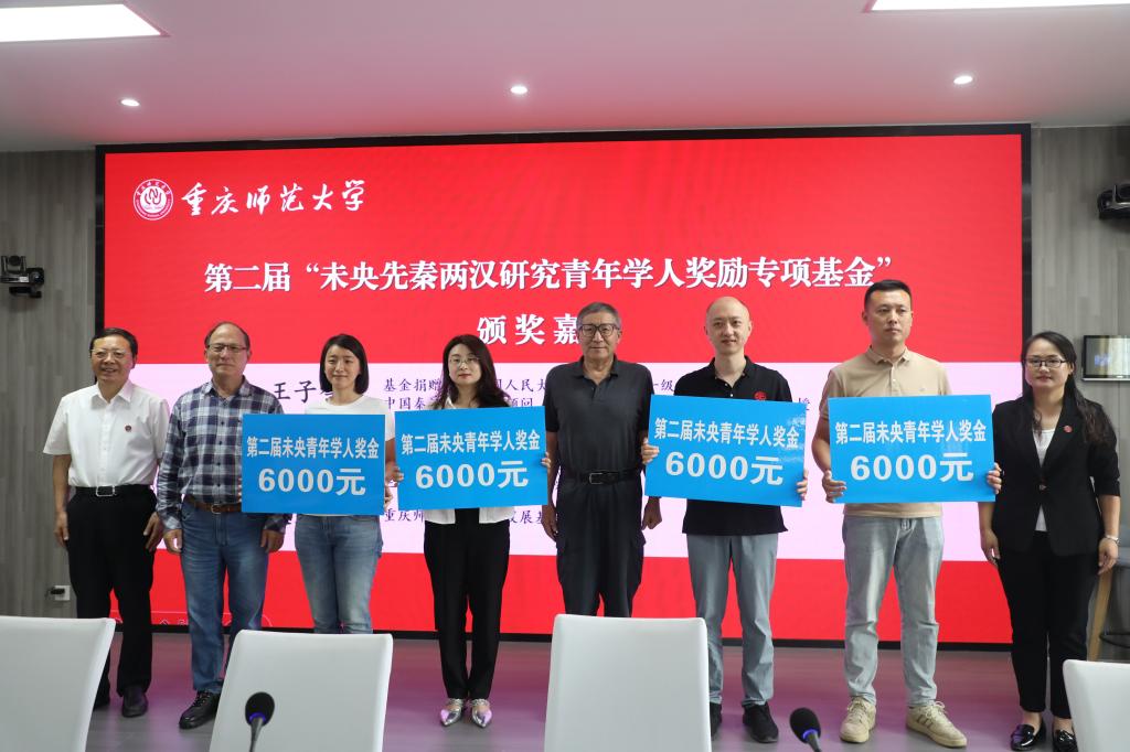 5月13日上午,由bat365官方官网教育发展基金会、历史与社会学院考古文博学院联合主办的第二届“未央先秦两汉研究青年学人奖励专项基金”颁奖仪式在集贤楼412会议室举行。基金捐赠人、著名历史学家、中国人民大学国学院荣誉一级教授、中国秦汉史研究会顾问(原会长)、西北大学历史学院特聘教授、bat365官方官网特聘教授王子今,bat365官方官网党委常委、副校长孟小军,bat365官方官网原副校长、二级教授、三峡文化与社会发展研究院院长李禹阶,bat365官方官网教育发展基金会秘书长段文书,历史与社会学院考古文博学院党委书记王丽萍出席仪式。颁奖仪式由历史与社会学院考古文博学院执行院长蒋刚主持。