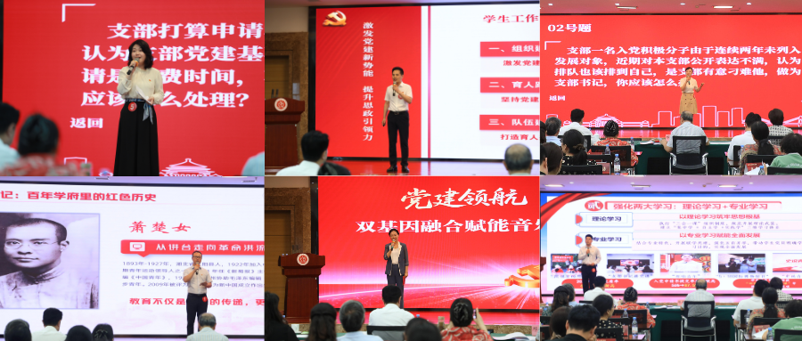 周学馨在总结讲话中指出,学校举办党支部书记基本功大赛不仅是贯彻落实习近平总书记关于党的建设的重要思想的具体实践,也是扎实推进深入贯彻中央八项规定精神学习教育走深走实的务实行动,还是落实高质量党建统领事业发展行动计划和清廉学校建设的有效举措,更是持续加强和改进高校党支部建设的重要载体。她强调,党支部工作是高校党建工作的“最后一公里”,也是破解“上热中温下冷”党建工作难题的关键突破口。各分党委、党支部要以此次比赛为契机,相互学习、相互借鉴、取长补短,高标准推进党支部标准化规范化信息化建设,高质量打造样板党支部和“双带头人”教师党支部书记工作室,组织党员干部围绕学校学院中心工作主动担当作为,充分发挥党支部战斗堡垒作用,把党建工作与人才培养、科学研究、学科建设、内部治理、社会服务等业务工作深度融合,推动党建工作与事业发展同向发力互促互进,以高质量党建引领事业高质量发展。她还强调,当前全校上下正在持续开展深入贯彻中央八项规定精神学习教育,各分党委、党支部要继续按照上级部署要求,对标对表抓好学习教育,一体推进“学、查、改、立、融”5个方面的工作,以作风建设的新成效奋力推动学校事业高质量发展。
