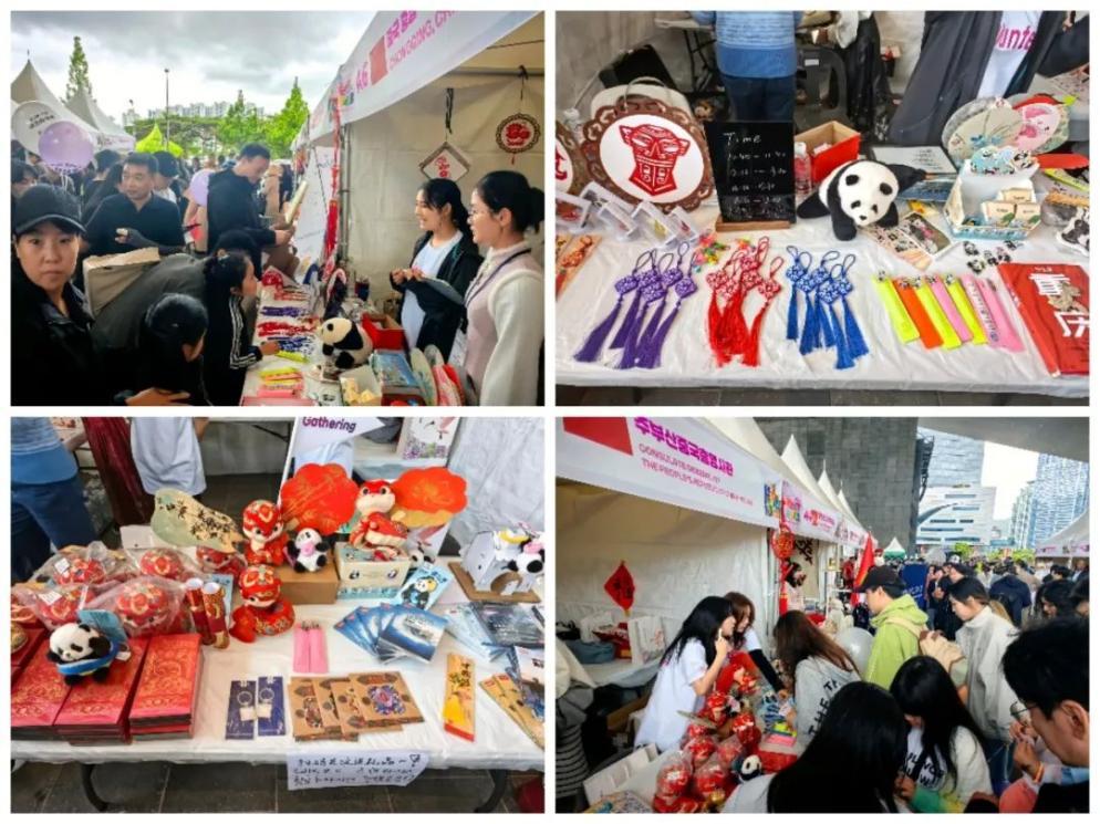 在庆典现场,bat365与驻釜山总领馆、重庆市人民对外友好协会共同精心布置中国展位,提供编织中国结、剪纸、书法等文化体验项目,并通过趣味知识问答与大家深入互动,向釜山市民介绍重庆的文化与学校的教育成果,深受釜山市民和各国朋友喜爱,成为本届庆典热门打卡点。