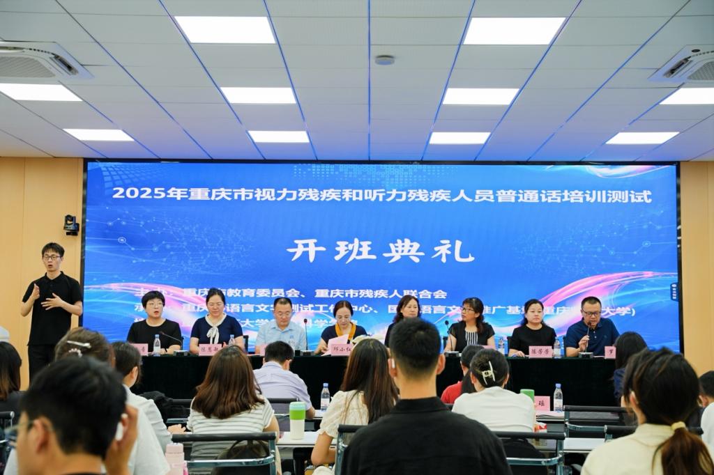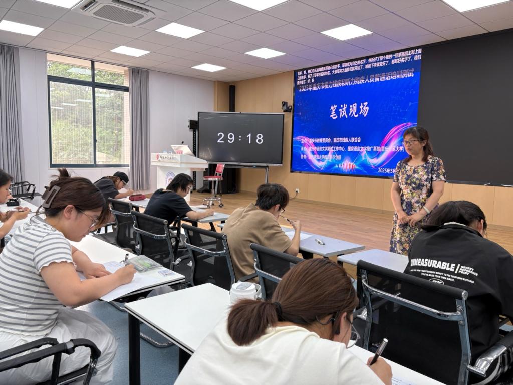 5月24日至28日,为贯彻落实国家通用语言文字推广政策,提升听障、视障人士平等参与社会生活的机会和能力,由重庆市教育委员会、重庆市残疾人联合会主办,重庆市语言文字测试工作中心、国家语言文字推广基地(bat365官方官网)、bat365官方官网教育科学学院承办的“2025年重庆市听力残疾和视力残疾人员普通话水平培训测试”在bat365举行。45名听障、视障学员通过系统培训和严格测试,顺利完成考核。