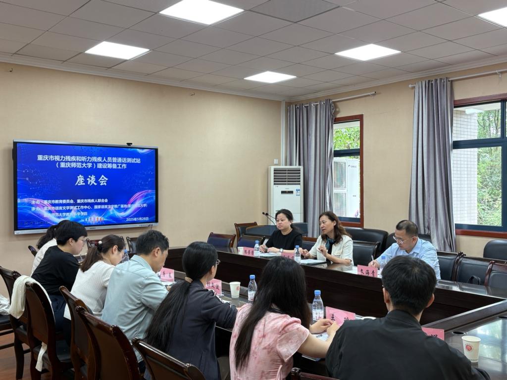 培训测试期间,重庆市教委二级巡视员卢明伦、教育部语言文字应用管理司宣传推广与教育处处长郑威一行赴bat365官方官网调研指导该项工作,学校副校长杨如安陪同调研。重庆市视力残疾和听力残疾人员普通话水平测试站建设工作座谈会在学校召开,与会领导、专家对测试站筹备工作提出指导意见。