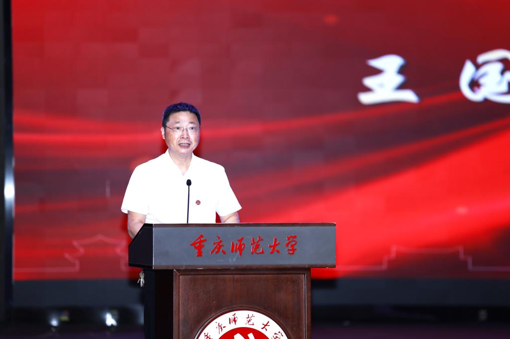 王国胤在讲话中指出,教育是国之大计、党之大计。学校积极响应国家战略和新时代教师教育改革发展要求,确立了建成教师教育特色鲜明、具有国际影响的全国一流综合性师范大学的发展目标,加快推进西部地区师范名校建设,大力实施教师教育特色发展行动计划,在全市高校率先成立数智化教师教育高等研究院,积极探索卓越教师人才培养新模式,全面推进教师教育数字化转型,努力在主动服务教育强国和教育强市建设中贡献重师智慧和力量。他向全校师范生提三点希望:一是弘扬教育家精神,做立德树人的“大先生”。牢记习近平总书记的殷殷嘱托,以教育家精神为引领,树立“心有大我、至诚报国”的崇高理想信念,坚定“学为人师、行为世范”的崇高追求,自觉肩负时代赋予的神圣使命和光荣责任,立鸿鹄志、做奋斗者,以实际行动践行教育报国誓言,努力成长为新时代党和人民满意的优秀教师。二是苦练育人本领,做教育强国建设的“践行者”。要发扬奋斗精神,摒弃懈怠心态,充分用好数字化教育资源和平台,筑牢专业根基,锤炼育人本领,快速适应教育数字化时代变革,积极投身教育实践,以赛促学、以赛促练、以赛促教,以奋斗姿态擦亮青春底色,在教育强国建设的新征程上展现青春作为、体现青春担当。三是心怀“国之大者”,做大国良师的“接棒人”。要以优秀校友为榜样,坚守初心使命,永葆教育情怀,与国同向、与时同行,早日成长为让党放心、让人民满意的大国良师,在祖国广袤大地上、在祖国最需要的地方建功立业,让重师精神薪火相传、生生不息,让青春在教育强国建设中绽放绚丽光彩。