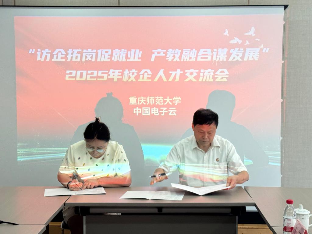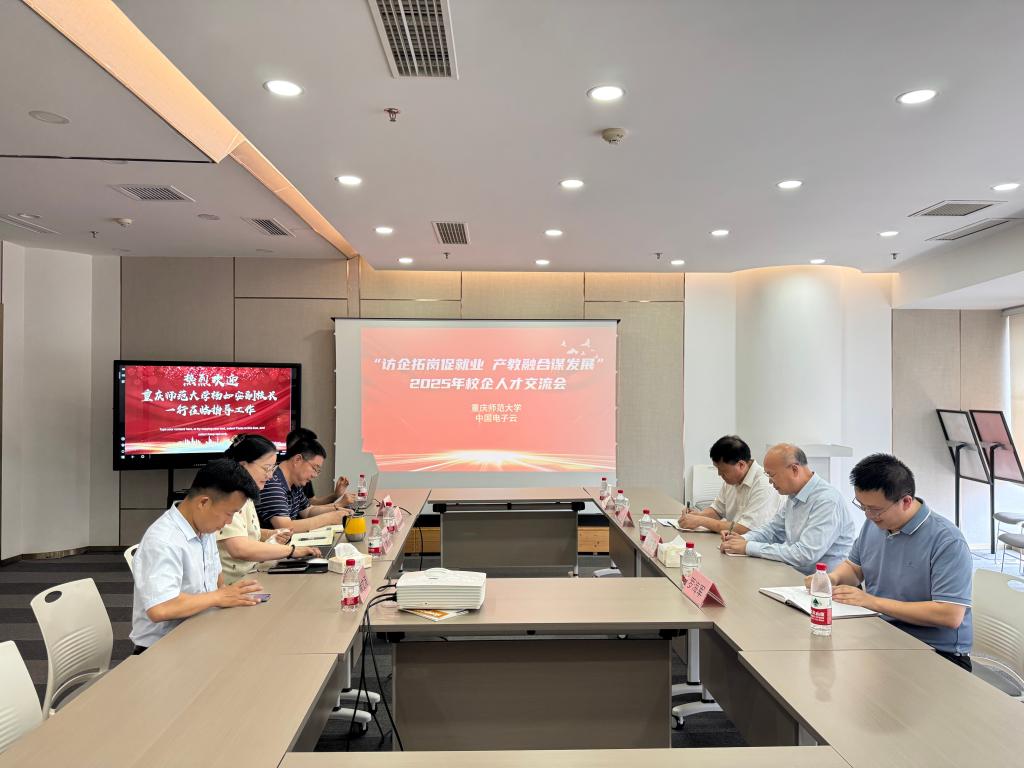 杨如安在交流中高度评价了中国电子云在行业内取得的成绩,并介绍了学校的发展历程、办学特色、学科建设以及人才培养情况。近年来,学校紧密围绕国家战略需求与地方经济社会发展需要,紧扣重庆 “33618”现代制造业集群体系, 持续优化专业布局,加强师资队伍建设,深化教育教学改革,人才培养质量与社会声誉稳步提升。期望双方以此为契机,在人才培养、实习就业、产学研合作等方面建立长期稳定的合作关系,携手为地方经济社会发展和国家现代化建设贡献力量。