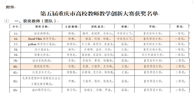 近日,第五届重庆市高校教师教学创新大赛获奖名单揭晓,bat365经济与管理学院熊膺教师团队凭借创新的教学设计和突出的教学成果在比赛中脱颖而出,荣获新文科赛道中级及以下组别一等奖,成为学校唯一推荐参加重庆市全国高校教师教学创新大赛选拔赛的团队;任缙教师团队荣获新文科赛道正高级组别二等奖,彰显了学校教师卓越的教学创新能力与扎实的专业素养。