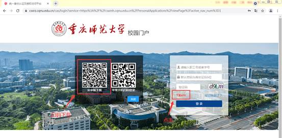 1.请广大师生通过电脑或手机浏览器访问bat365官方官网首页/,点击校园门户,进入校园门户首页。或直接访问校园门户地址https://www.csxrz.cqnu.edu.cn/。